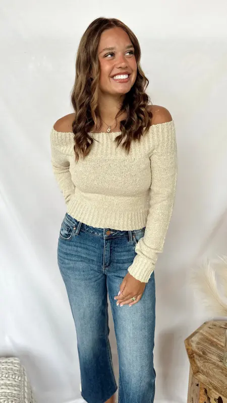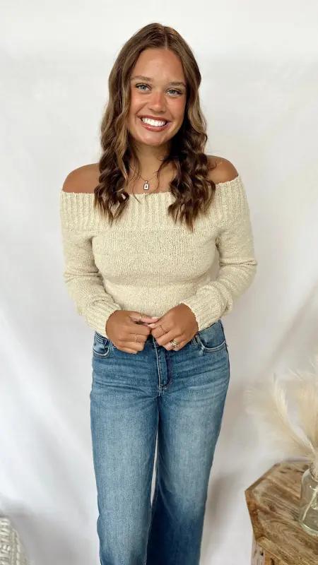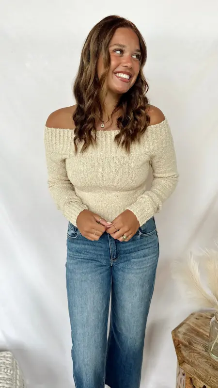 The Sadie Mae Sweater is your go-to for cozy and casual days. Its soft cream fabric and off-the-shoulder design add a flirty twist to your comfy look. Perfect for layering or wearing solo, it’s easy to dress up or down with your favorite jeans or skirts. Stay warm and stylish without any fuss!